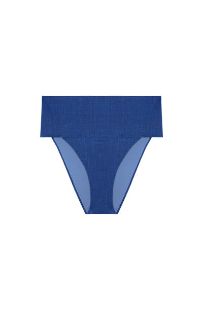 Enhance your swimwear collection with the Naomi & Angie 61 Jean Bikini, featuring a sophisticated V-neck sports bra top. The wide raw-cut Bonded neckline and straps provide superior support. This bikini is also suitable for generous breasts and includes straight high-waisted bottoms with a wide Bonded fold-over waistband. The raw-cut finishes and full lining in the same colour add an elegant touch to this exclusive piece.